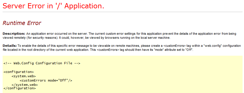 < customErrors mode="Off"/ >